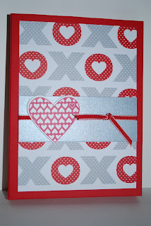 Sharing another Valentine's Card! This was made at my upline, Cathy Buch's house! She had us all over for a fabulous Xmas open house. Lots of good fun, friends, food and of course, stamping! The photo doesn't show it well, but the gray card base has embossed polka dots! Love that folder! I am really liking the red glimmer paper too! I am not a huge fan of glitter normally, but there is no mess with this paper at all! It just gives the card that little bit of dazzle that brightens it right up! Enjoy!